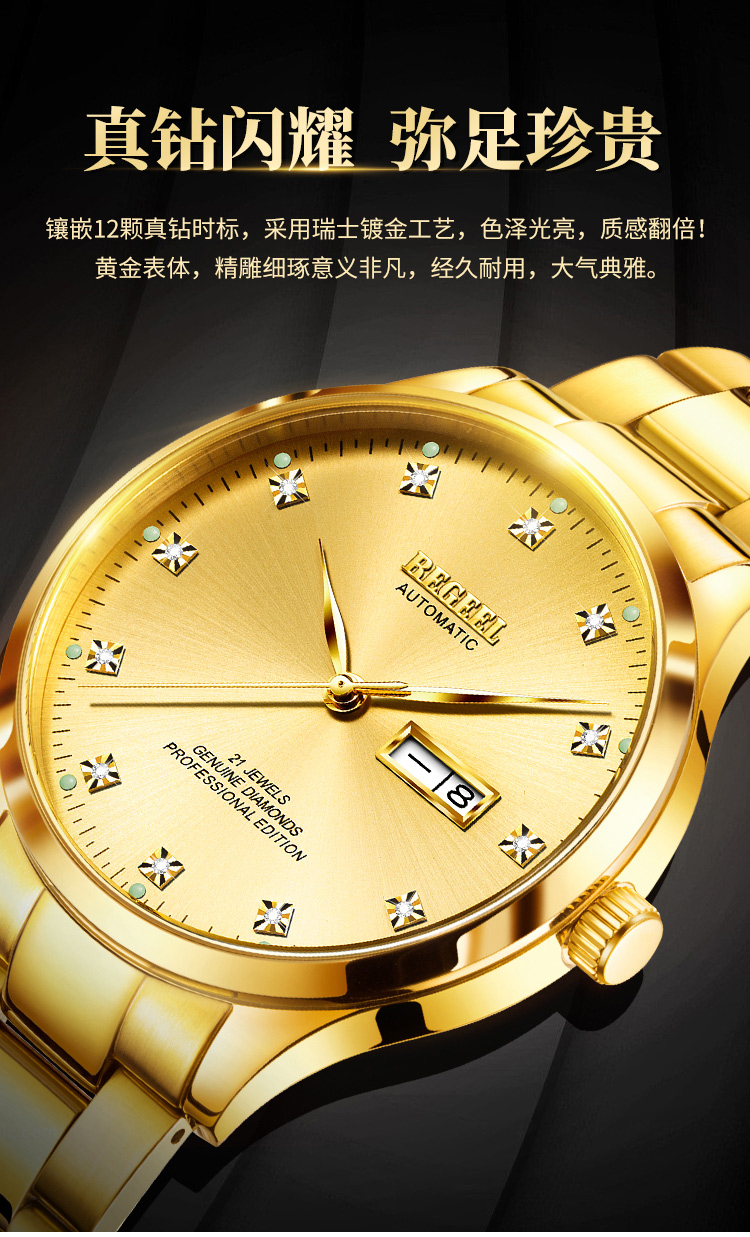黃金表的表殼由750的純金、125 的和125的銅鑄造而成。由于銀和銅的顏色與黃金非常相似,純金鑄造的合金仍然保持了黃金的本色,但硬度增加了很多,完全可以應(yīng)付來(lái)自表帶.勞力士的拉力,幾乎是金表的代名詞。我覺(jué)得當(dāng)年香港電影里的大佬都是穿金的,自帶光環(huán)!