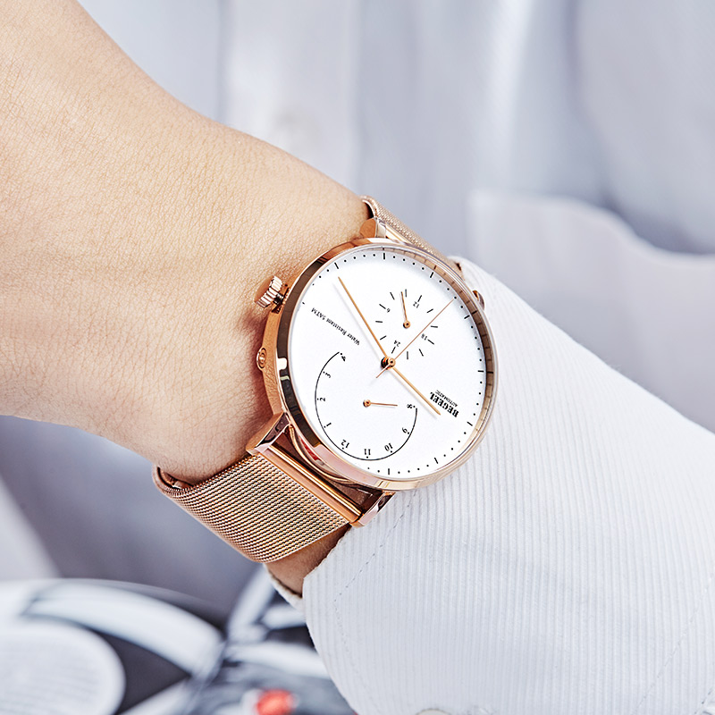 為傳遞時下流行的“慢時尚,輕生活”的生活理念,瑞士賓爵表聯(lián)合北歐新銳設計師,跨界推出簡歐風尚系列腕表。簡歐風尚系列專為時尚前沿的潮流人士設計,靈感源自北歐極簡風格,設計師專注地踐行“時尚、簡約、自然”的設計理念,以簡約的幾何輪廓,精準比例的流暢線條、精致的細節(jié)與細膩的質感體現(xiàn)北歐設計的精髓。賓爵簡約派多功能機械腕表,在延續(xù)這一系列簡約風格的基礎之上,創(chuàng)造性地加入功能設計元素,融合現(xiàn)代幾何構圖,簡潔卻不失設計感,摩登范兒十足。