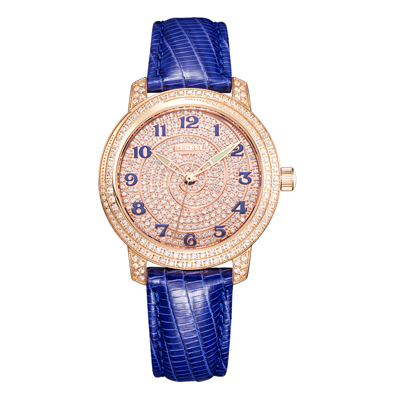 表殼:玫瑰金/螺旋鉆圈口/鑲100粒水鉆