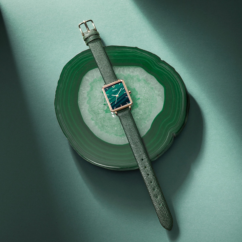 SCENREY·秘境系列-歐若拉—以深淺交織的孔雀石紋理,展現(xiàn)出時(shí)間流動(dòng)的韻律之美,宛如置身于密林,幽靜長(zhǎng)遠(yuǎn),卻不乏生機(jī)。演繹個(gè)性與復(fù)古;大膽八邊形表殼設(shè)計(jì),切角圓滑,方寸之間,優(yōu)雅撩人。孔雀石紋理,氣質(zhì)又經(jīng)典的綠色,就像是「優(yōu)雅標(biāo)簽」一樣。復(fù)古與時(shí)尚之間,閃耀著摩登感的色調(diào)。