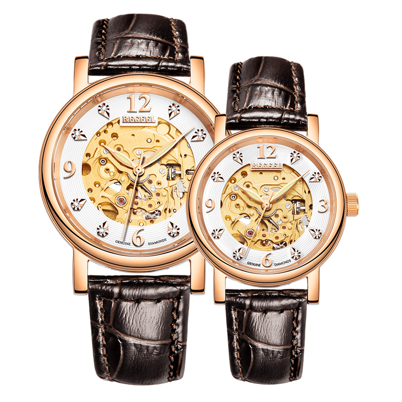 表帶:316L精鋼+電鍍真玫瑰金/電鍍真金/深棕色牛皮/橙色牛皮