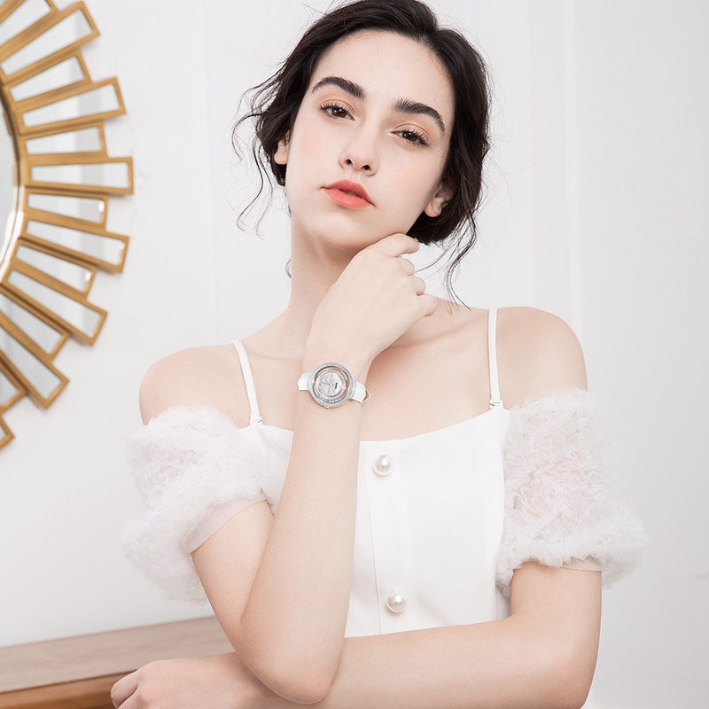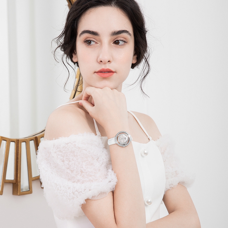 舞蹈藝術(shù)是充滿力量與美的運(yùn)動(dòng),設(shè)計(jì)師由巴黎舞者Sylvie Guillem(希薇·紀(jì)蓮)的舞姿中采擷靈感,將舞者生生不息的律動(dòng)與光影融入腕表設(shè)計(jì)當(dāng)中,讓水晶鉆擺脫了鑲座的束縛,以流動(dòng)的形態(tài)自由地環(huán)繞在表盤的邊緣,一如Sylvie Guillem出神入化的舞蹈靈性,借此創(chuàng)造出抽象而輕靈的腕表風(fēng)格。