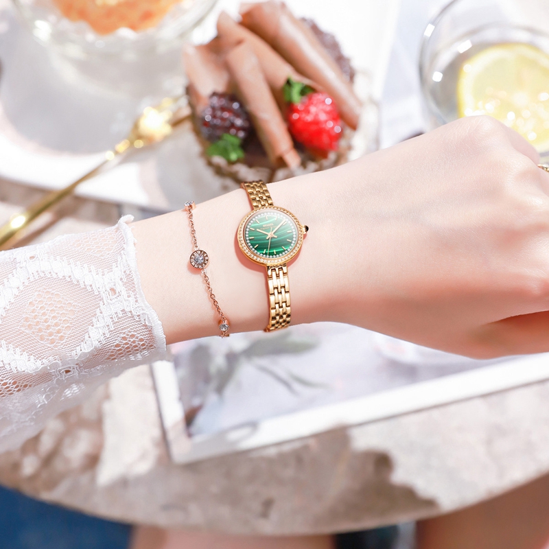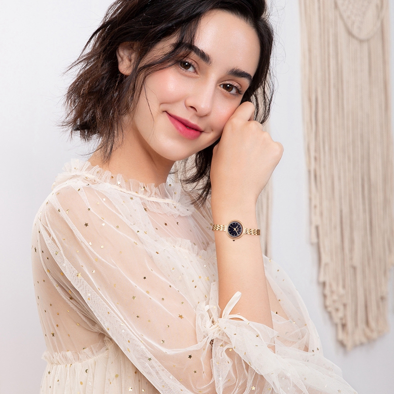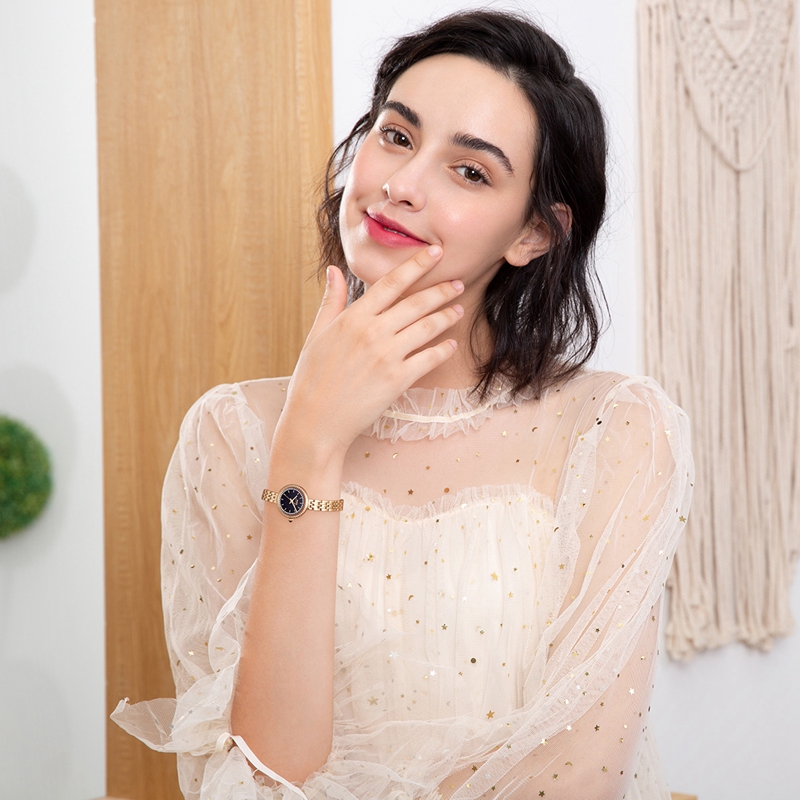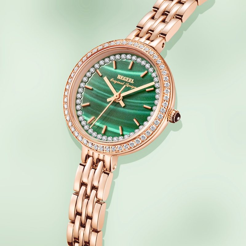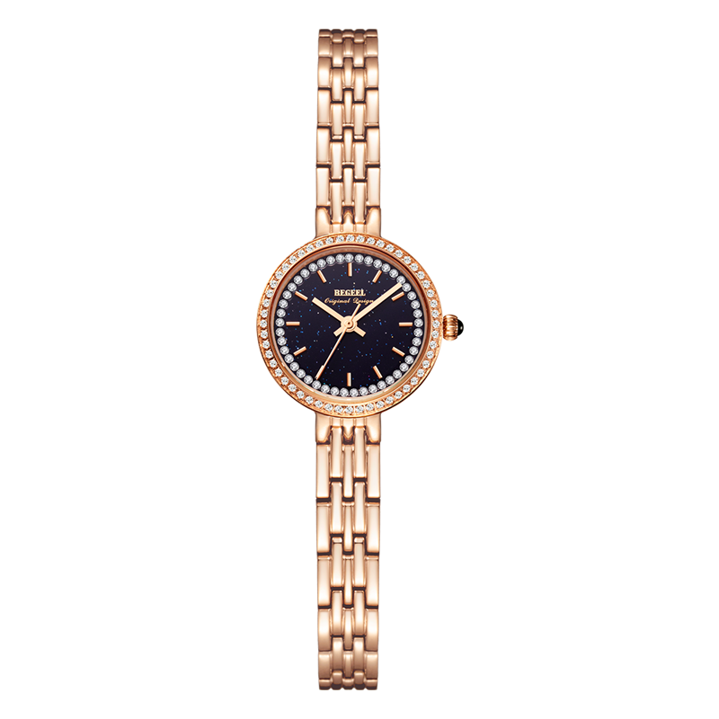 表殼:316L鋼+電鍍玫瑰金,鑲52顆水晶鉆
