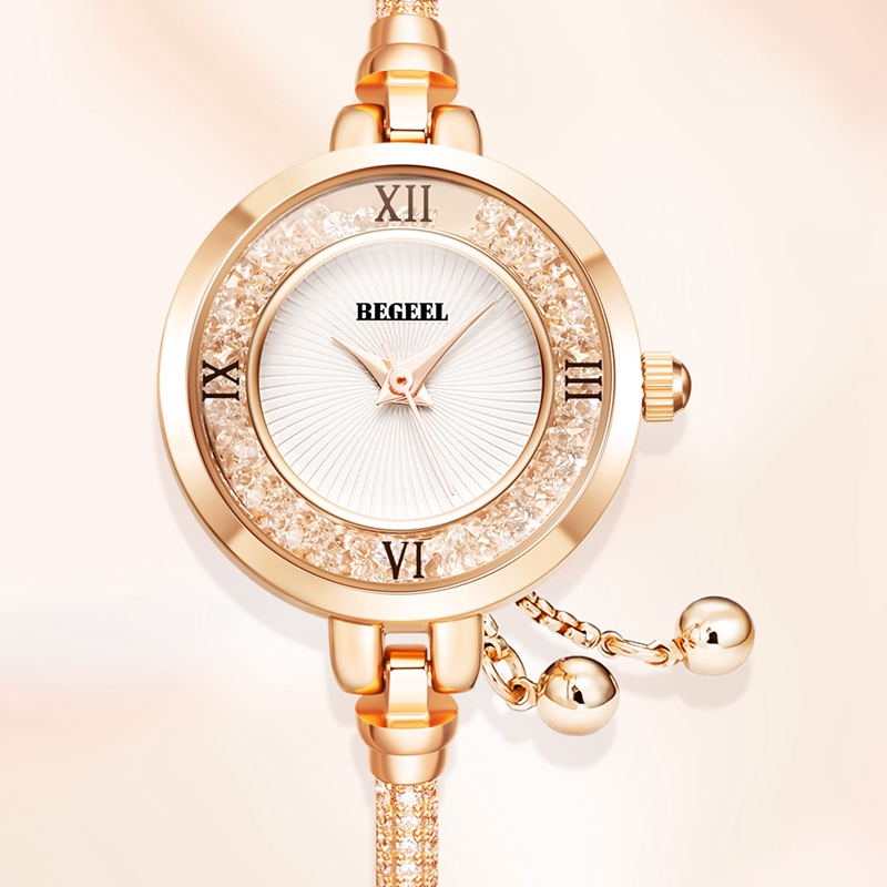 表殼:電鍍玫瑰金,流動(dòng)水晶鉆