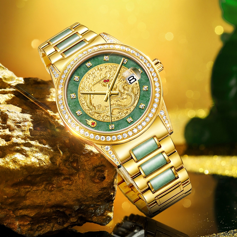表帶:316L精鋼+電鍍真金+6顆真翡翠 (約0.085ct)
