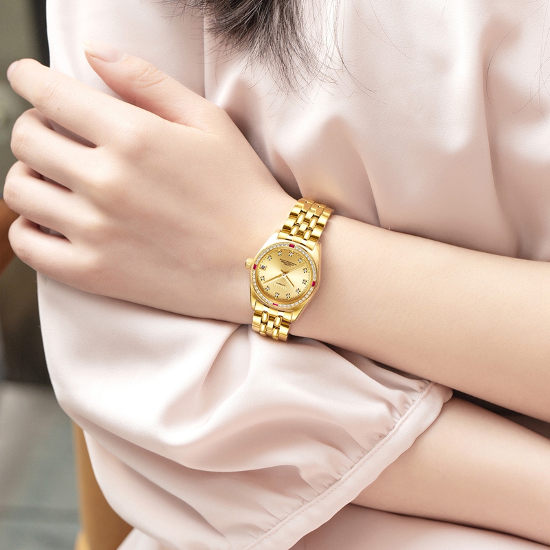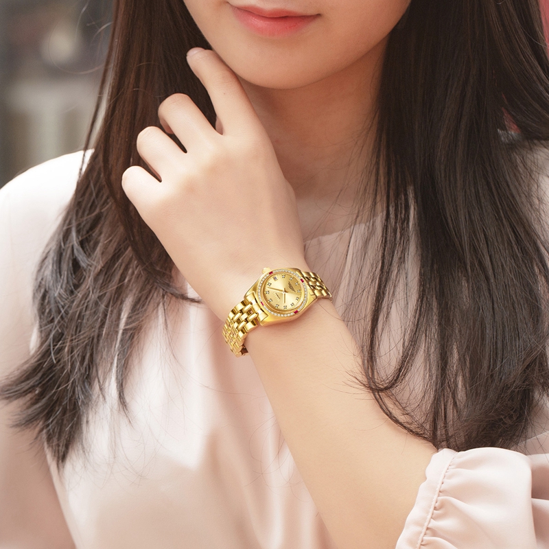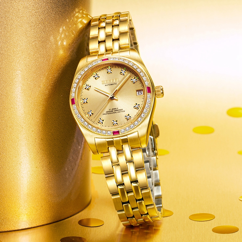 表殼:316L精鋼+電鍍真金,鑲36顆晶鉆, 4顆紅方晶鉆