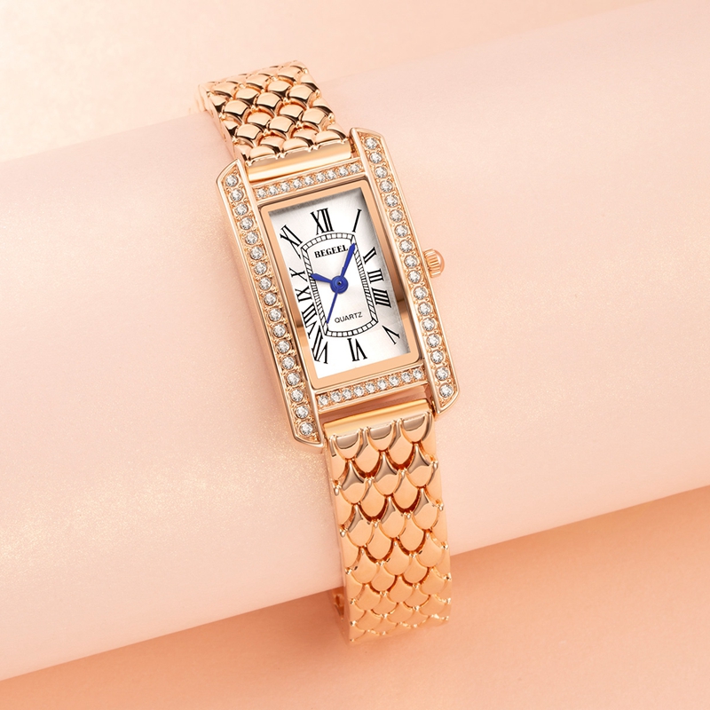 表殼:電鍍玫瑰金,鑲52顆晶鉆