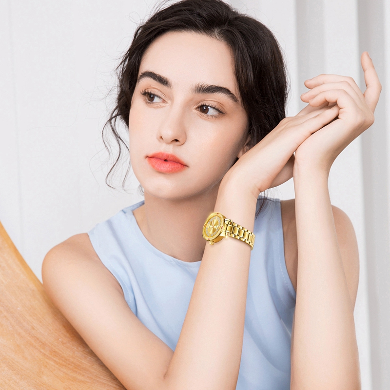 表殼:鋼(電鍍真金),圈口鑲56顆晶鉆