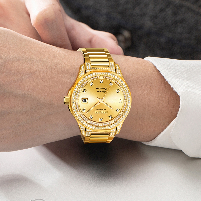 表殼:316L精鋼電鍍真金,鑲約114顆晶鉆