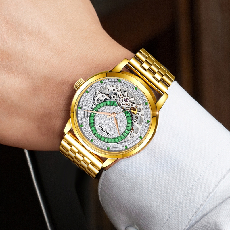 BEGEEL賓爵流金時光男士真鉆機械腕表