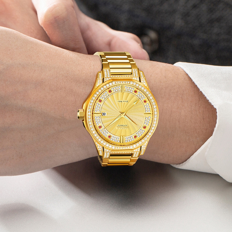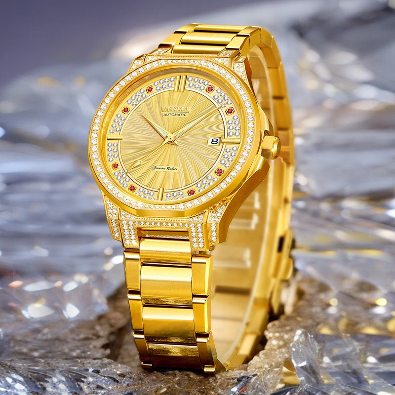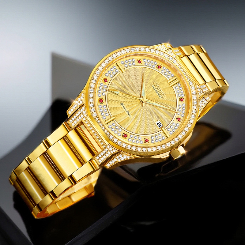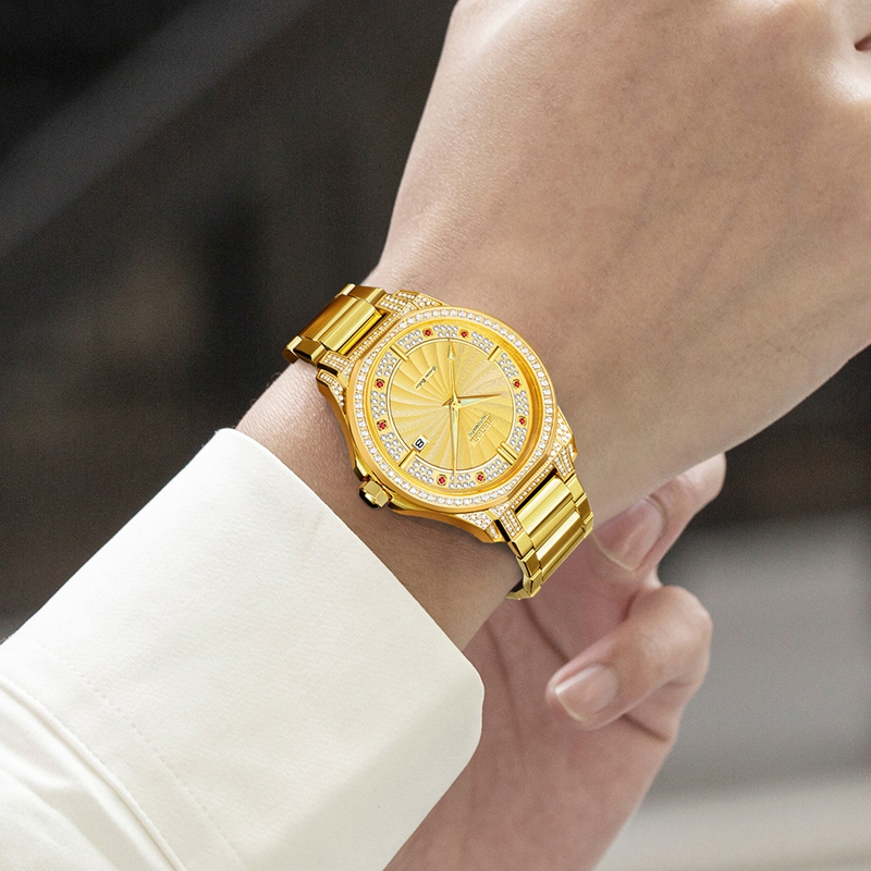 表殼:316L精鋼電鍍真金,鑲約114顆晶鉆