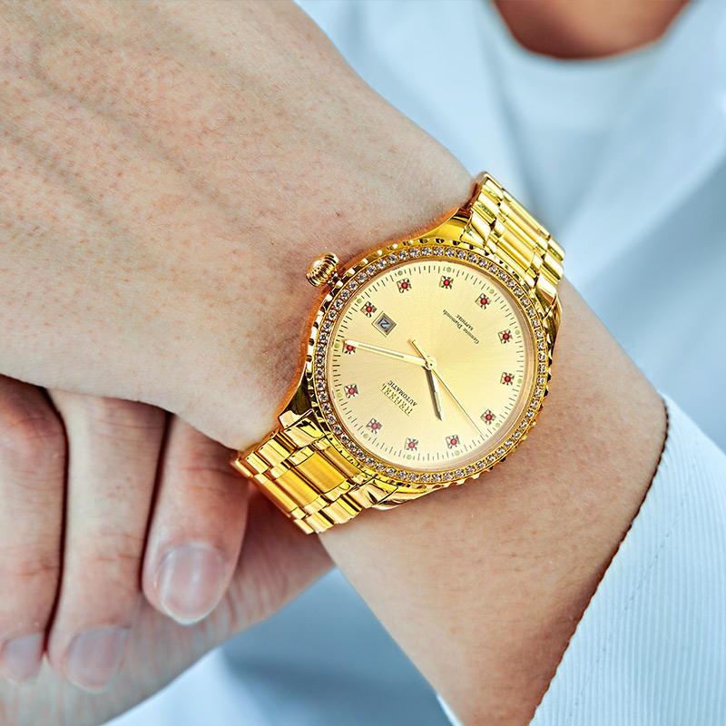在西方的婚姻習(xí)俗里面,結(jié)婚的第四十周年稱為“紅寶石婚”,四十年風(fēng)雨同舟,并肩而立,于苦難中相扶相依,相守相知,在人生過(guò)半的時(shí)候能夠共同度過(guò)這個(gè)節(jié)日,回首過(guò)去的坎坷悲喜,這才是婚姻的幸福和幸運(yùn)所在;賓爵設(shè)計(jì)師從紅寶石婚習(xí)俗中汲取靈感,以象征愛(ài)情和熱情的紅寶石為主要設(shè)計(jì)元素,沿襲品牌皇室定制基因,打造出這款經(jīng)典高貴且意義非凡的紀(jì)念型腕表,愿天下有情人終成眷屬。