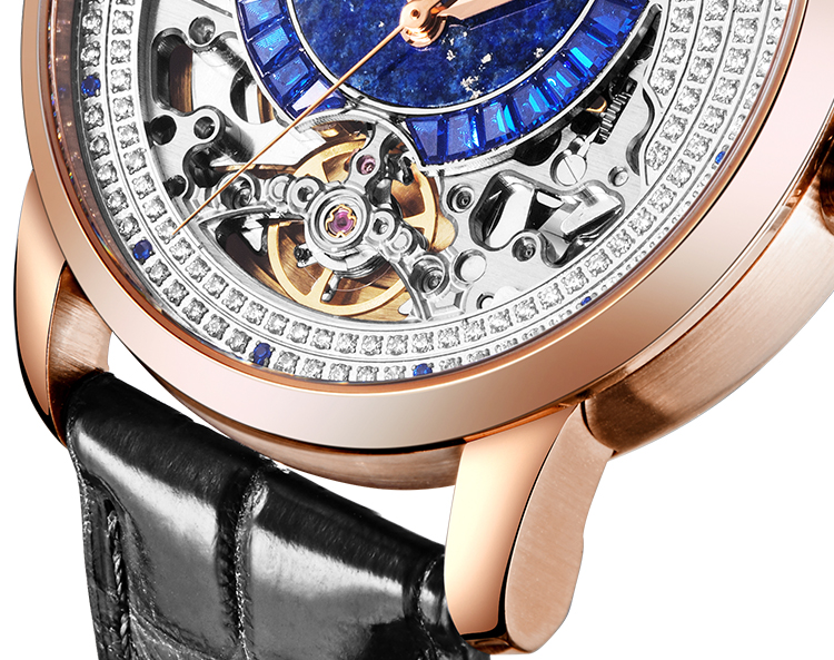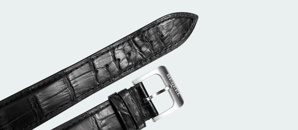 手工縫制的鱷魚皮表帶,表帶中的優(yōu)良品質(zhì),產(chǎn)量少,珍貴稀有,紋理自然細膩,內(nèi)里為杏色防汗涂層,佩戴舒服。
